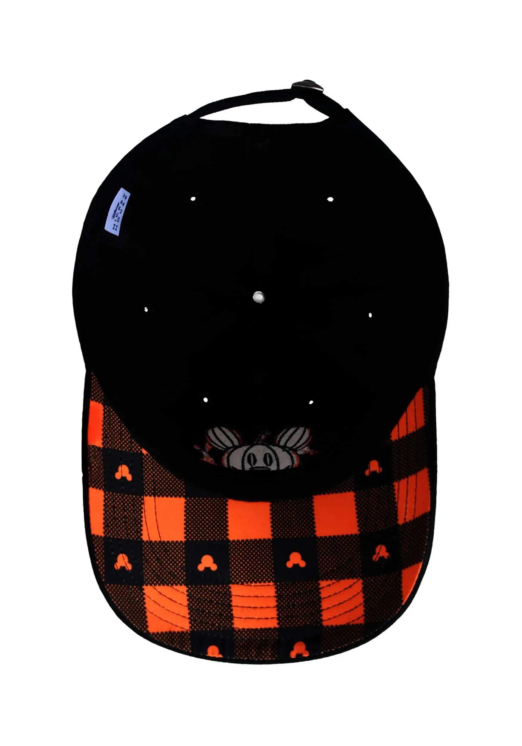 This is a Mickey Mouse Pumpkin Head Hat with Plaid Underbrim.