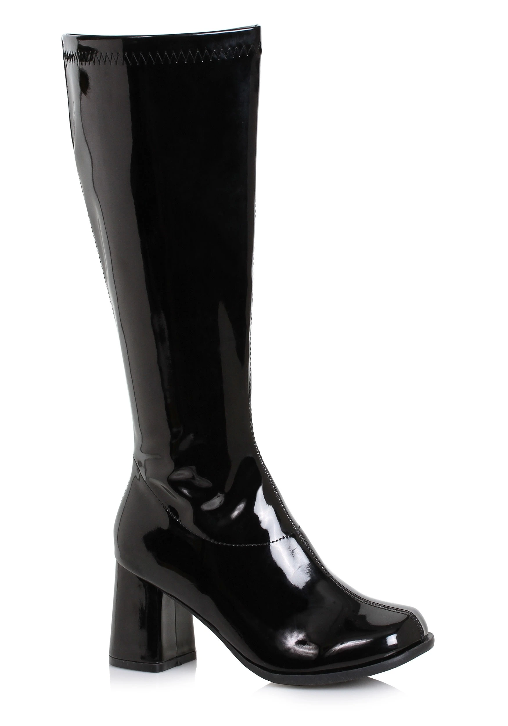 Go-go boots came into popularity with the new streamlined looks of the mid to late sixties and didn’t go out of fashion until the late seventies. Since then they’ve faded in and out of the eye of the public. These boots have a modest flared heel that will keep you stable on the dance floor while still giving you a lift. They are made of a wet look fabric and will look fabulous with short disco dresses.