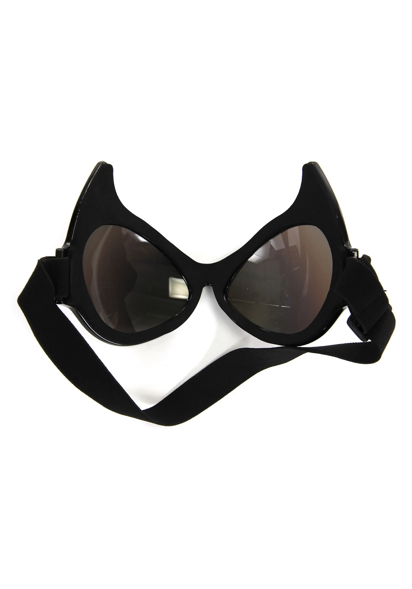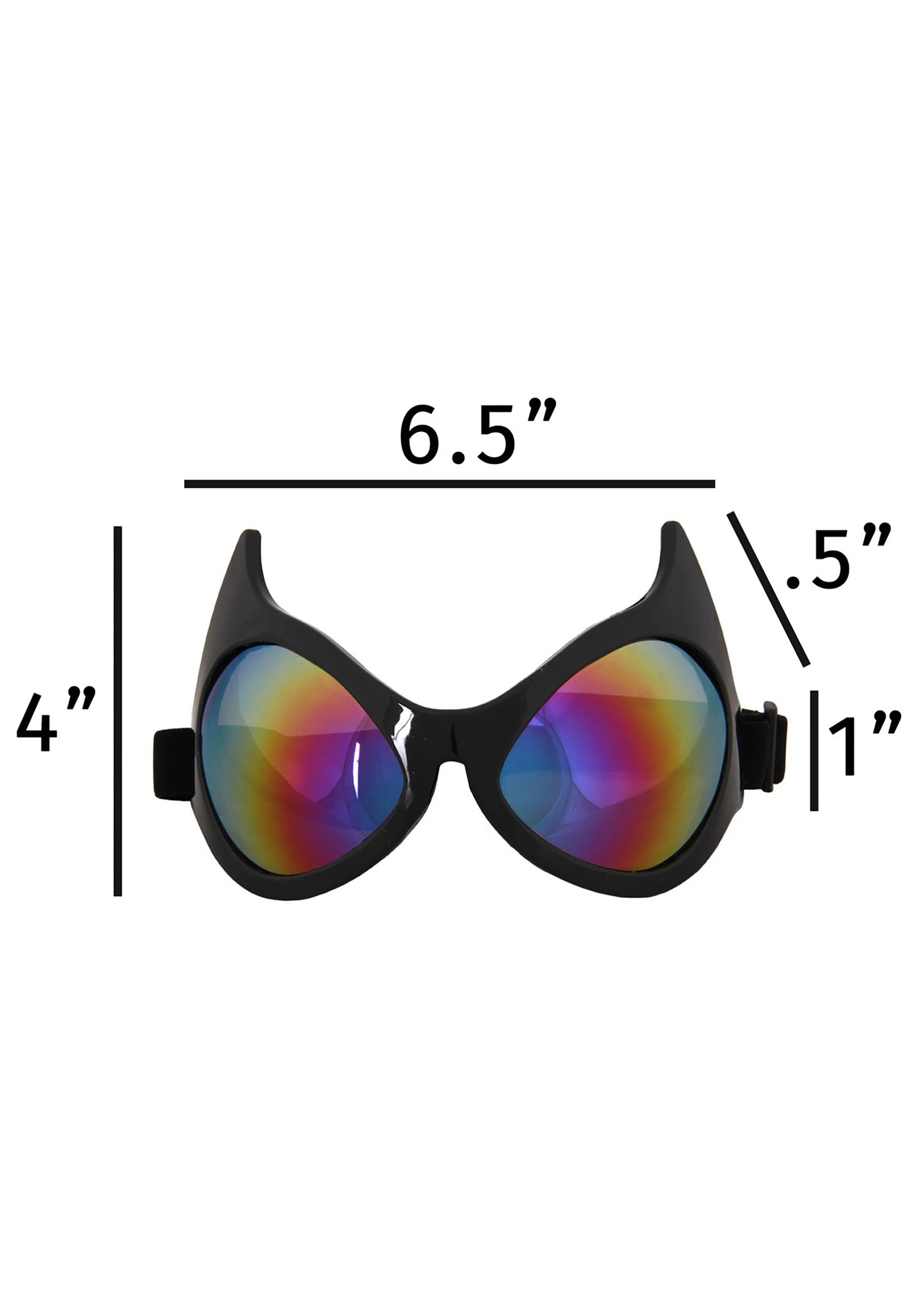 - Black plastic frames have smoky lenses w/ iridescent outer coating