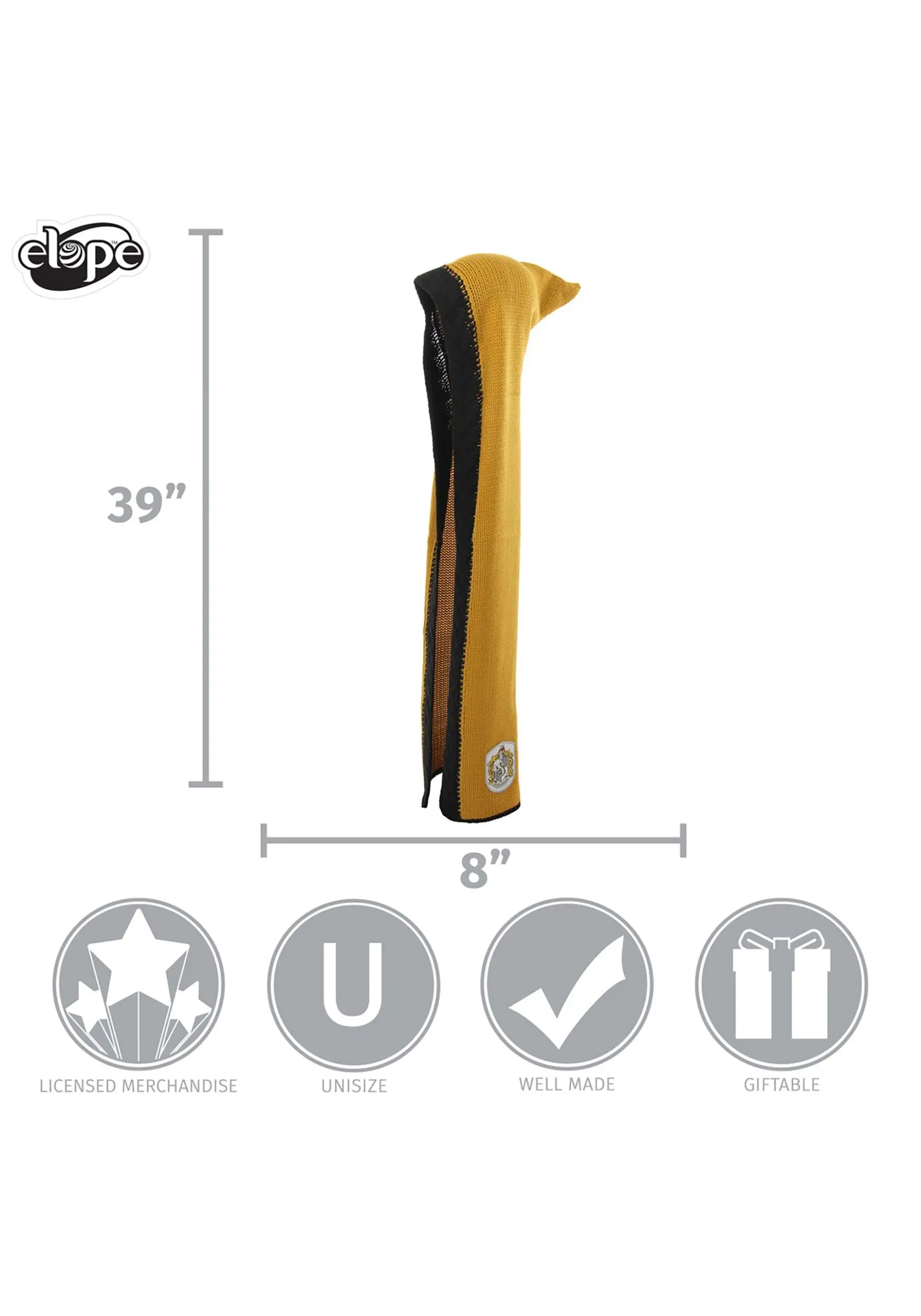 - Cable-knit band on front edge,Hufflepuff patch on left side