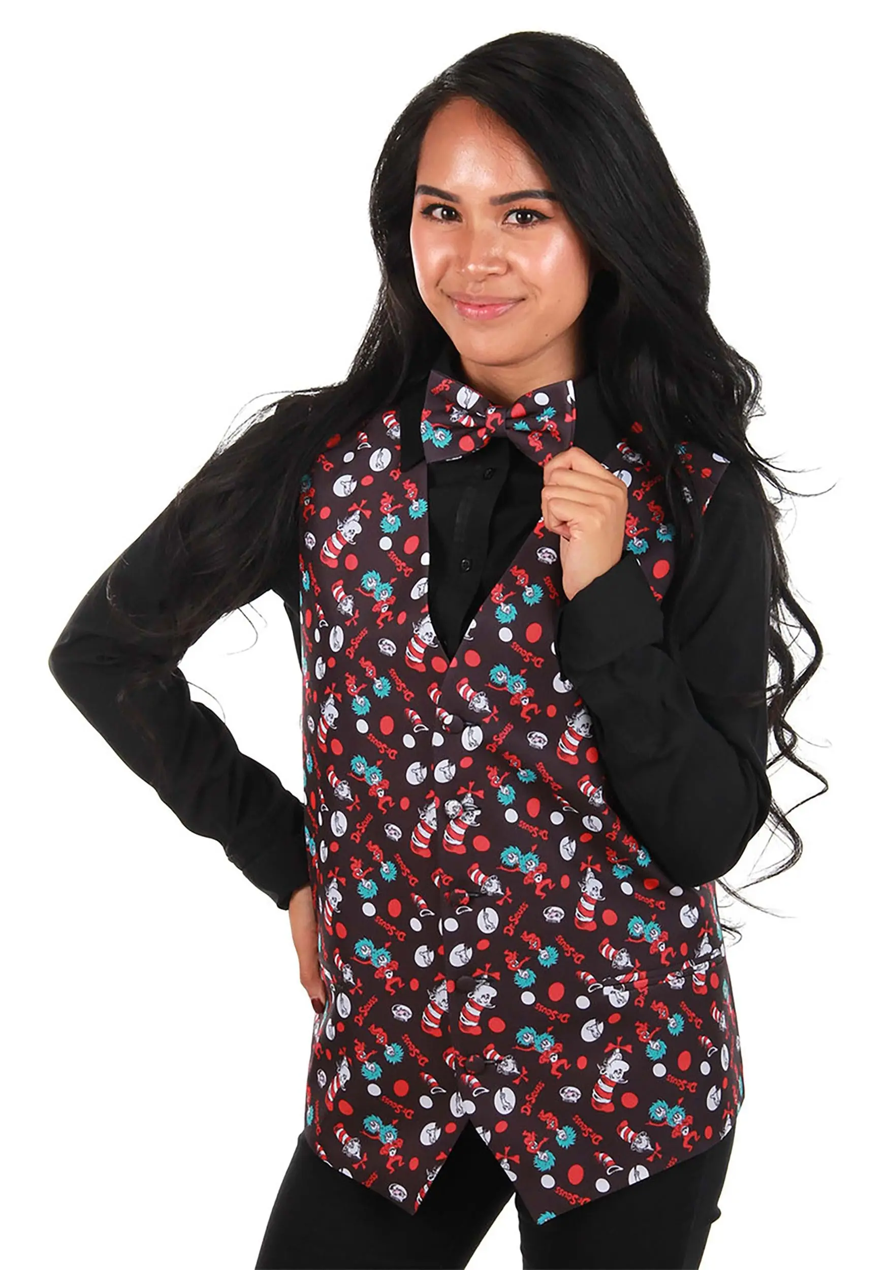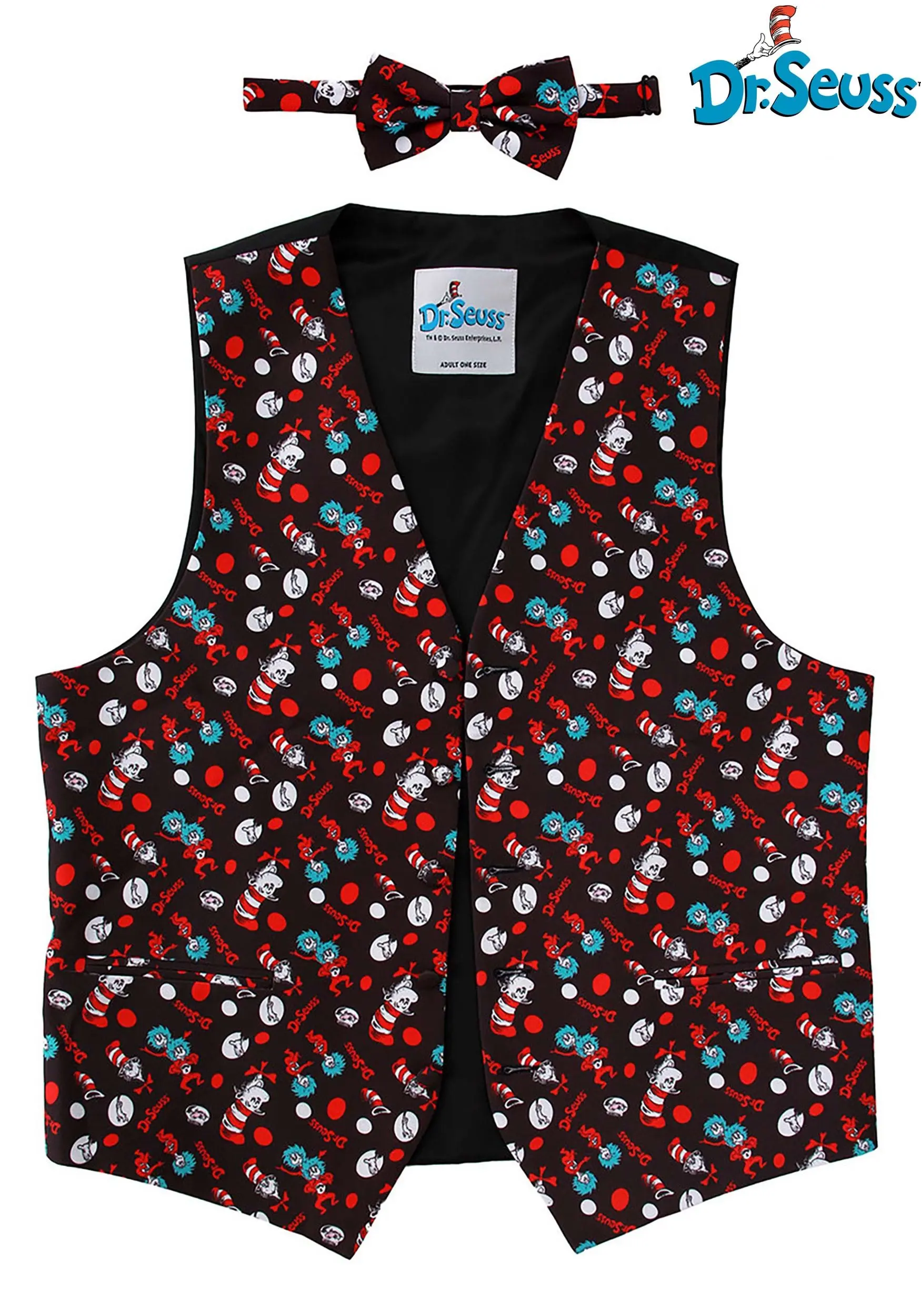 - Cat in the Hat patterned vest and matching bow tie